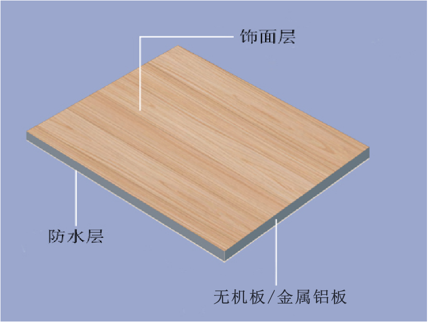 木纹生态装饰板(也称:木饰板)是以高强度无机纤维增强防火板/金属铝板为基材,采用特种生产工艺制得的具有多功能、绿色、节能、环保内墙装饰板。